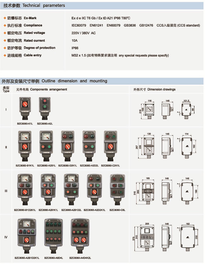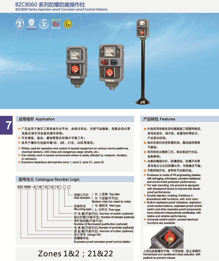 • 產(chǎn)品名稱:BZC8060系列防爆防腐操作柱