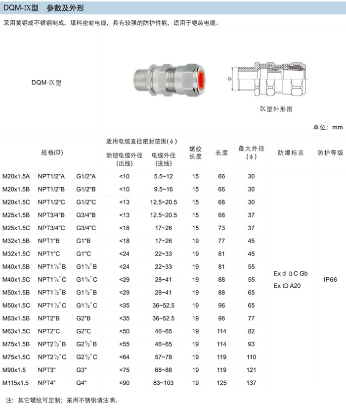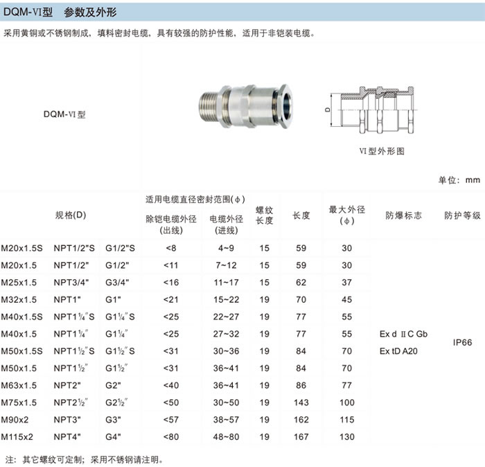 • 產(chǎn)品名稱:DQM系列防爆電纜夾緊密封接頭(填料式)