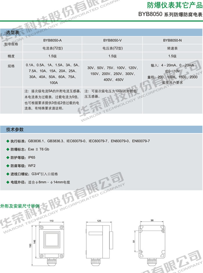 • 產(chǎn)品名稱:BYB8050 系列防爆防腐電表