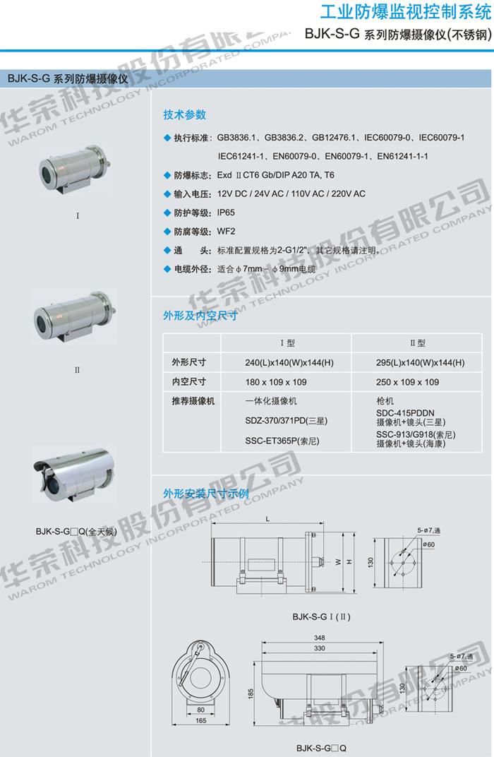 • 產(chǎn)品名稱:BJK-S-G 系列防爆攝像儀(不銹鋼)