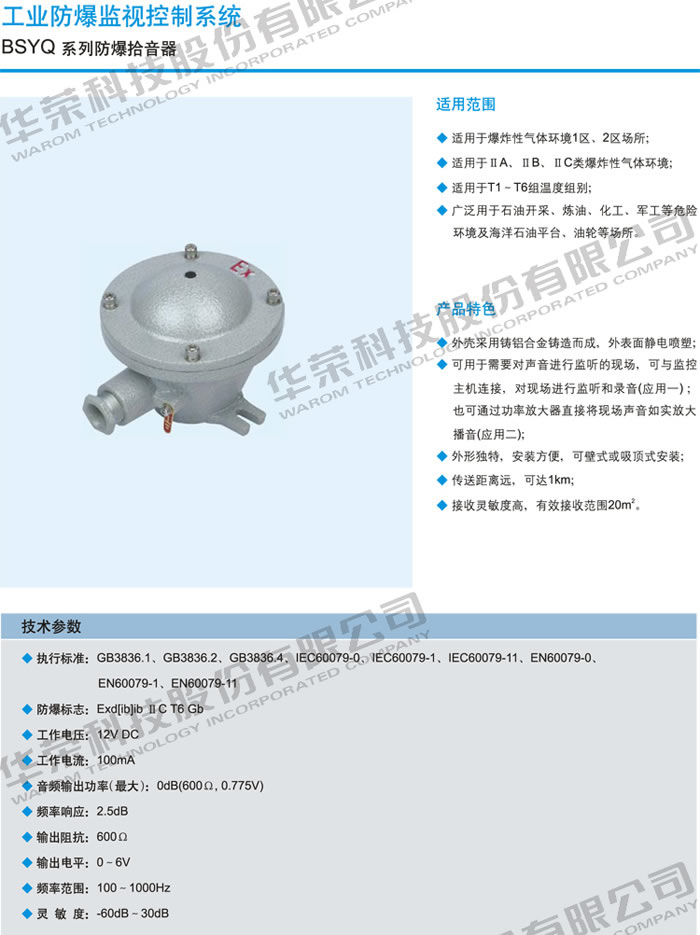 • 產(chǎn)品名稱:BSYQ 系列防爆拾音器