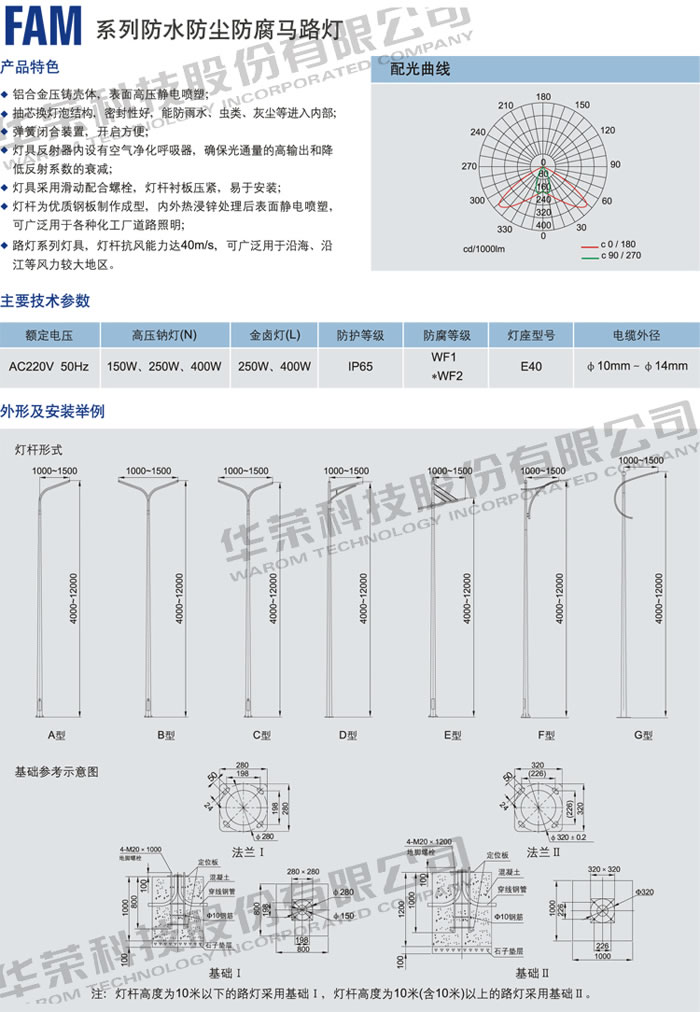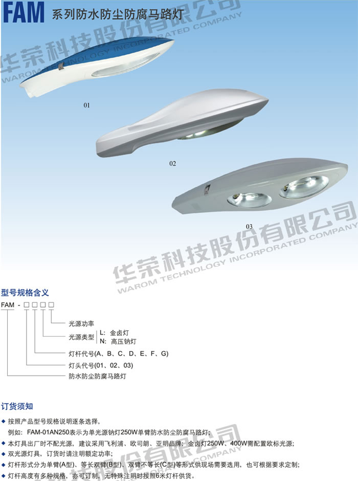 • 產(chǎn)品名稱:FAM 系列防水防塵防腐馬路燈