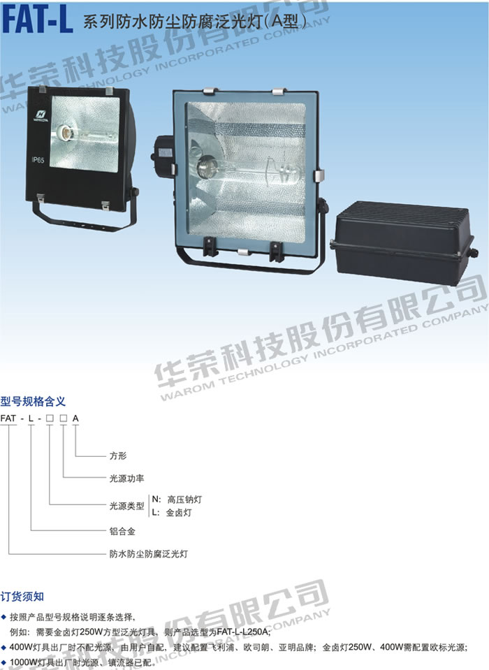 • 產(chǎn)品名稱:FAT-L 系列防水防塵防腐泛光燈(A型)