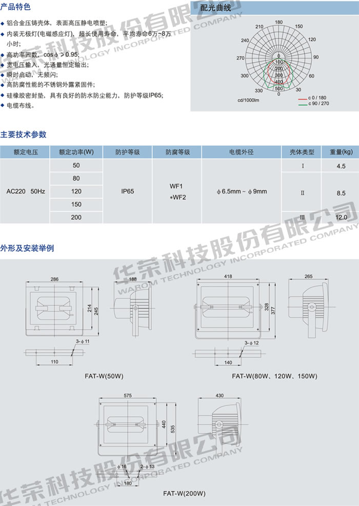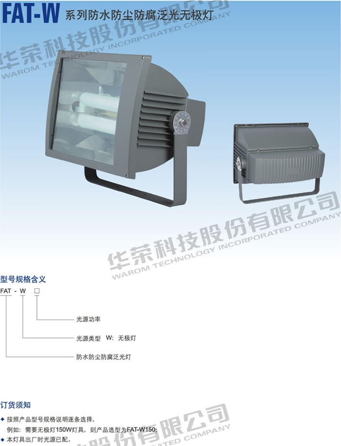 • 產(chǎn)品名稱:FAT-W 系列防水防塵防腐泛光無極燈