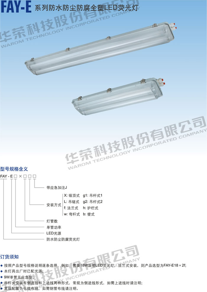• 產(chǎn)品名稱:FAY-E?系列防水防塵防腐全塑LED熒光燈