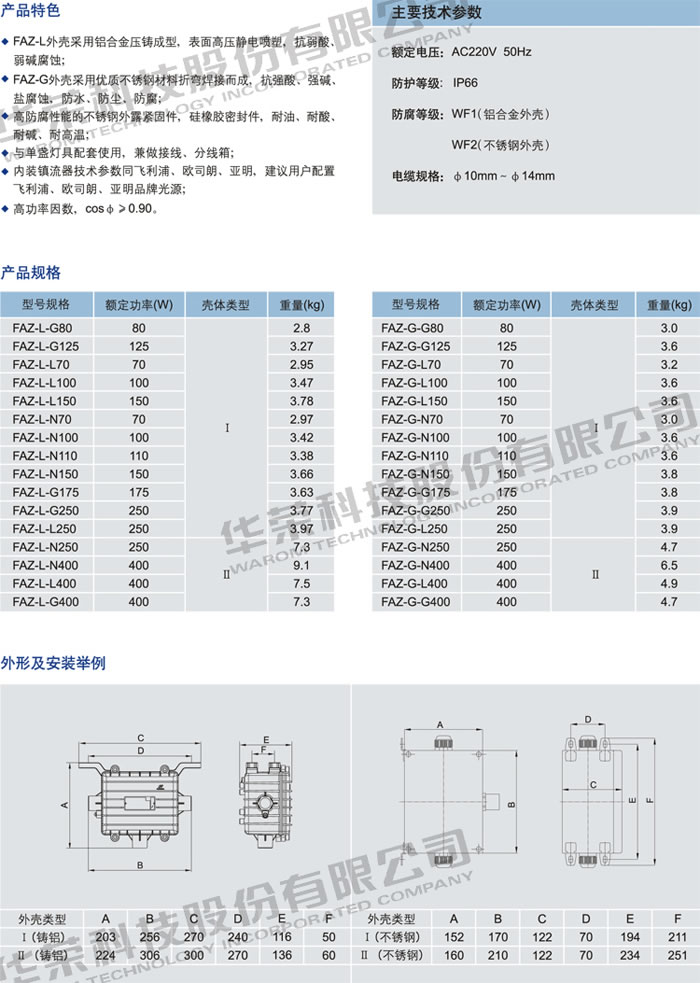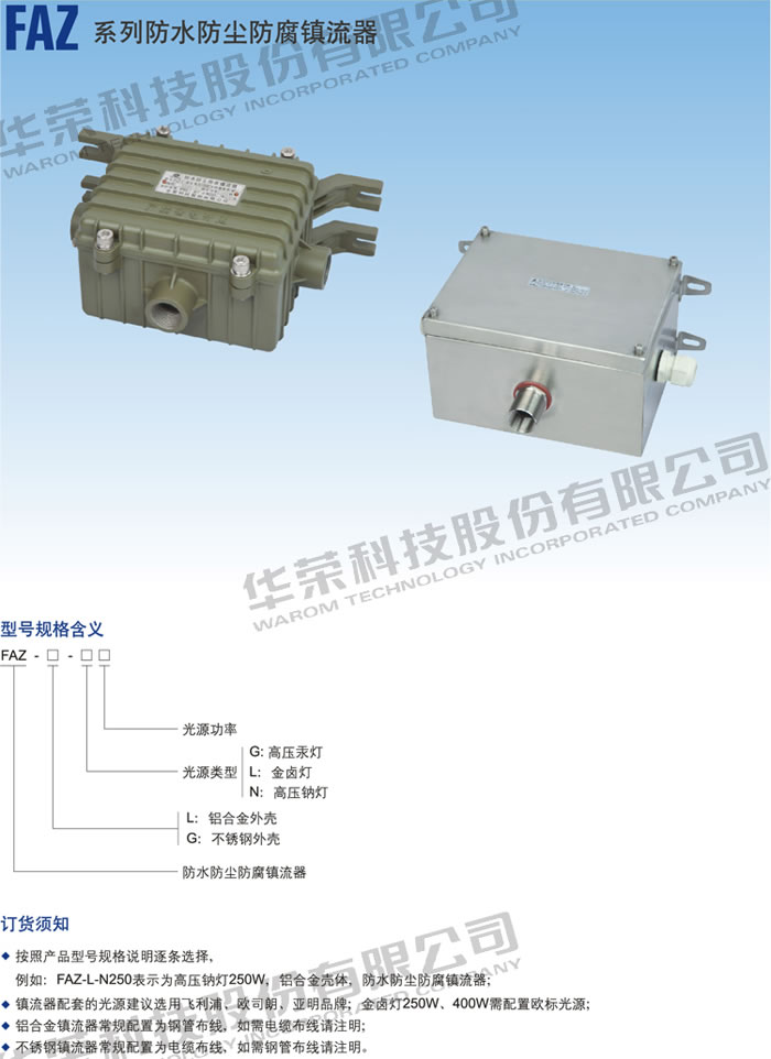 • 產(chǎn)品名稱:FAZ 系列防水防塵防腐鎮(zhèn)流器