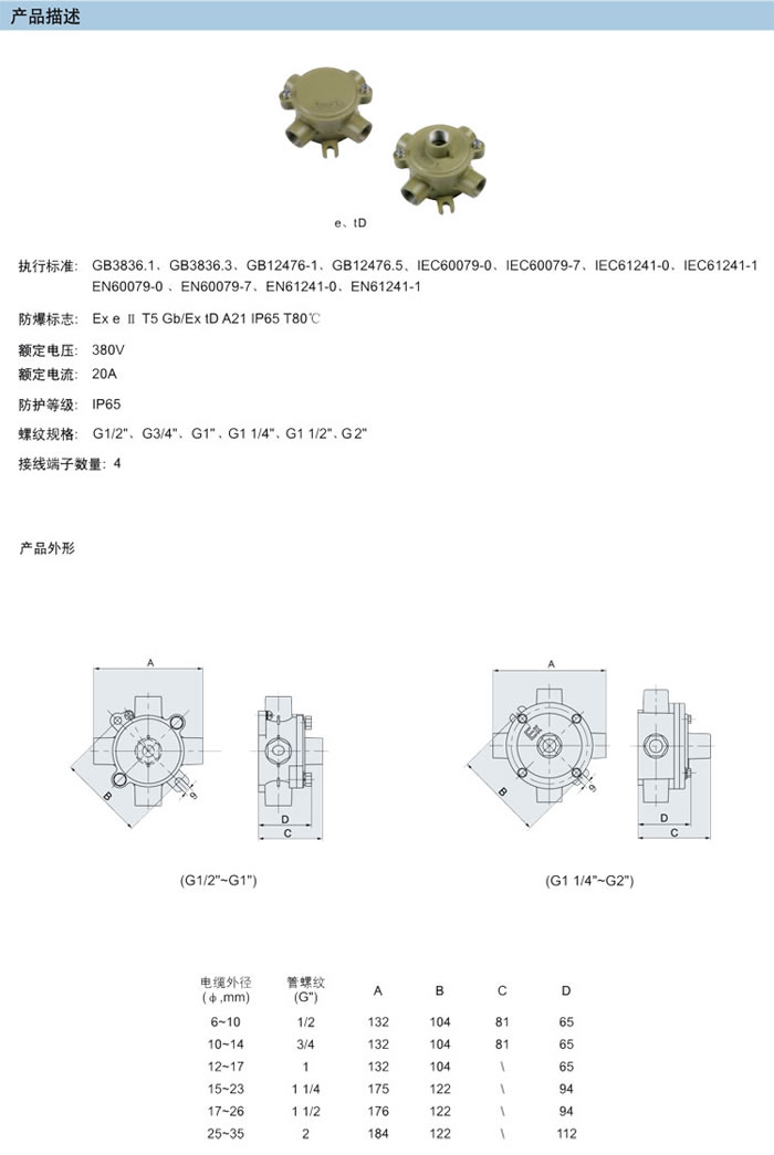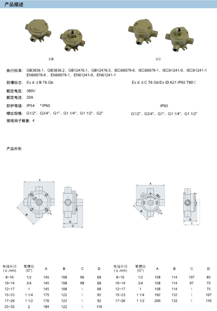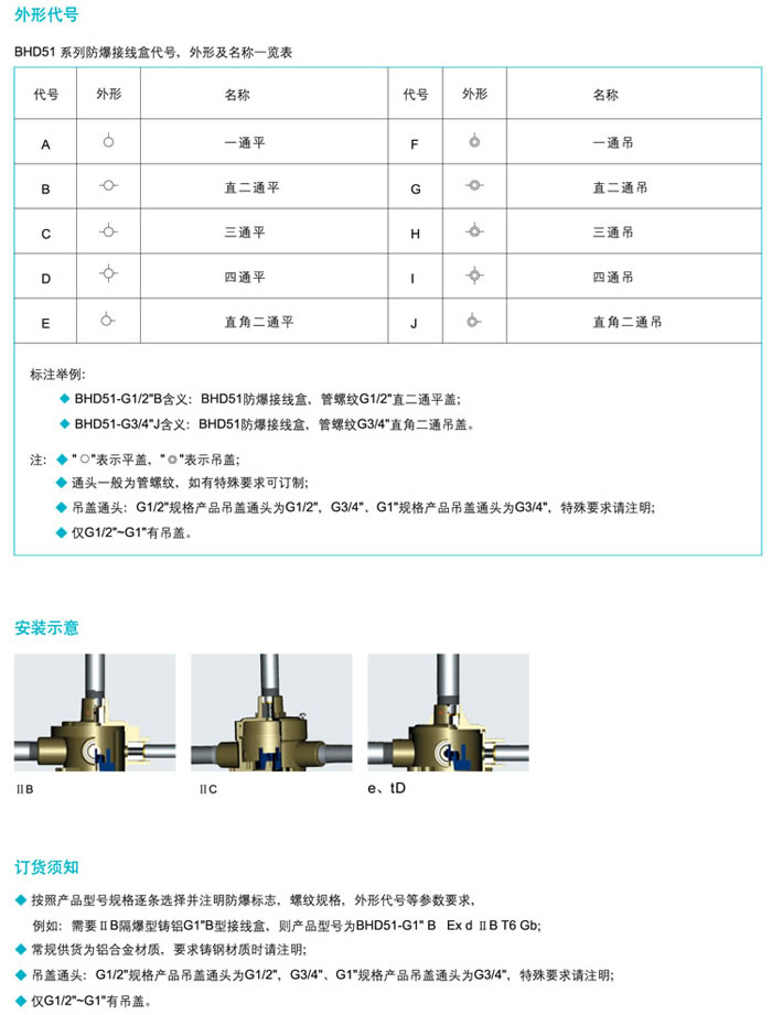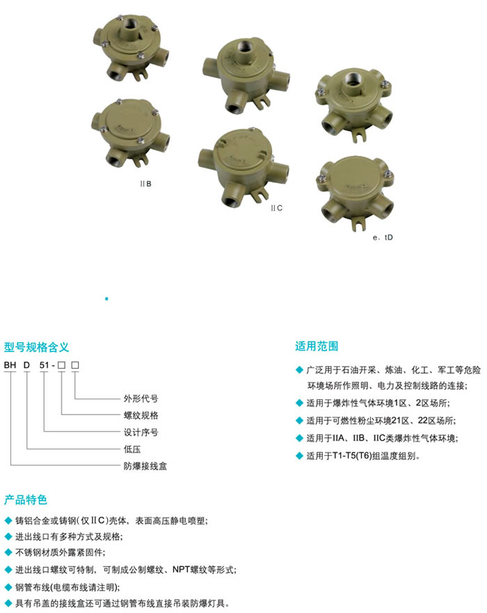 • 產(chǎn)品名稱:BHD51系列防爆接線盒(ⅡB、ⅡC、e、tD)