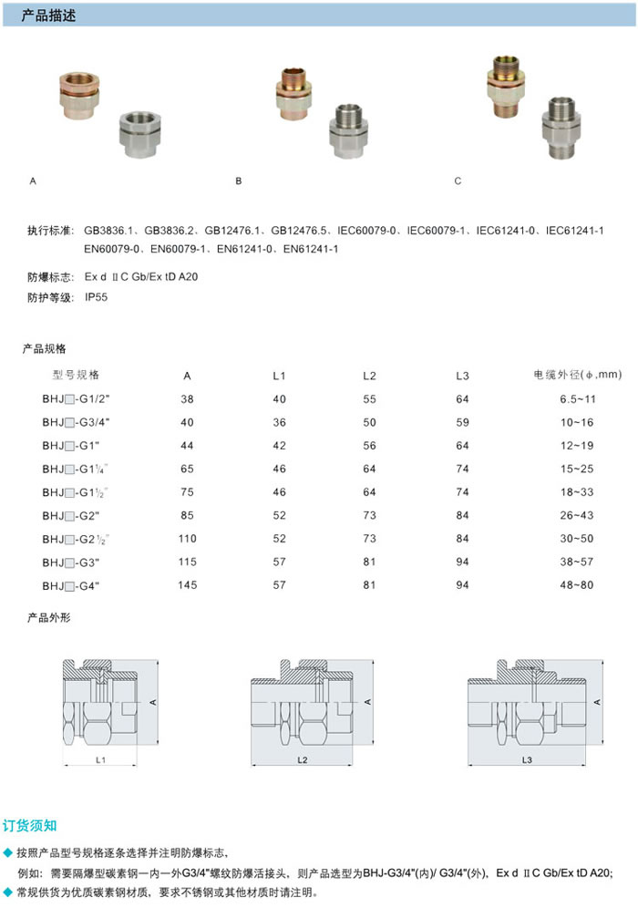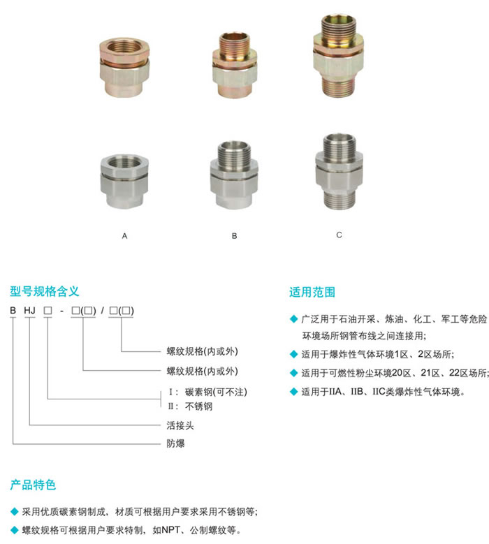 • 產品名稱:BHJ系列防爆活接頭(ⅡC、tD)
