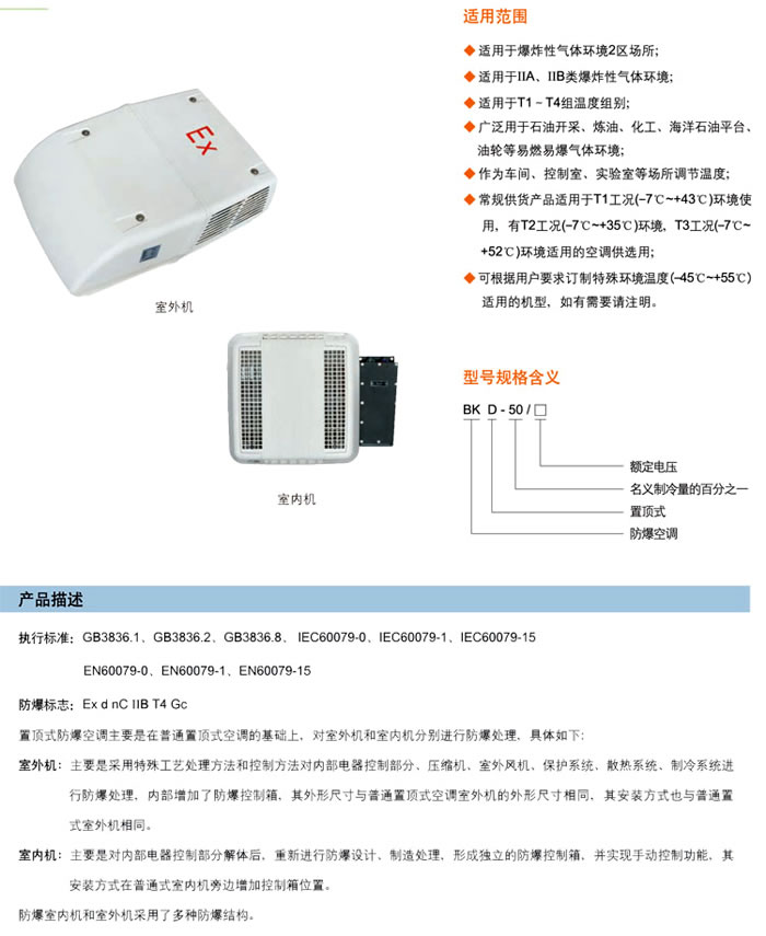 BKD系列防爆置頂式空調(diào)(ⅡB)