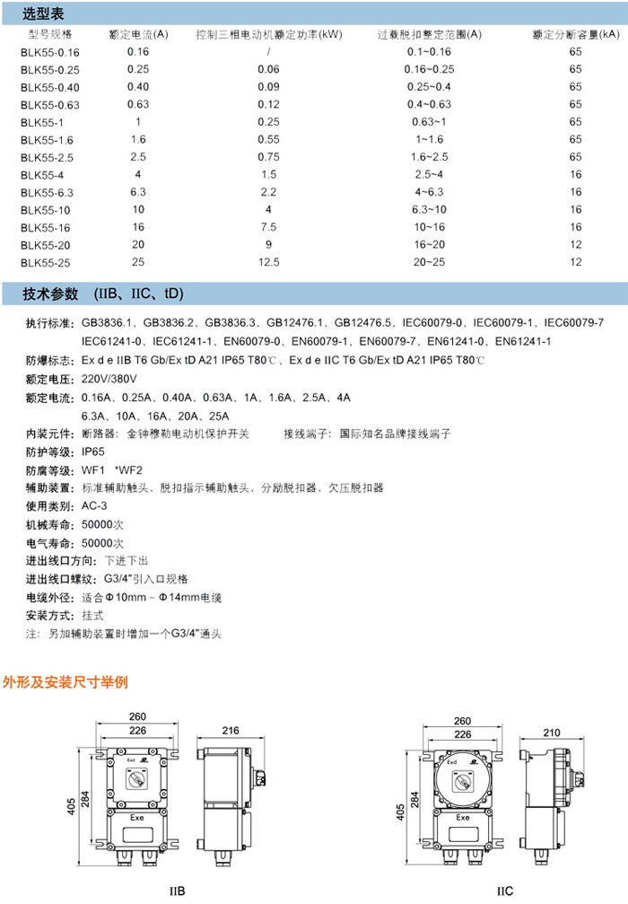 BLK55系列防爆電動(dòng)機(jī)保護(hù)開關(guān)(ⅡB、ⅡC、tD)