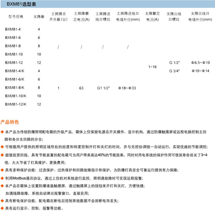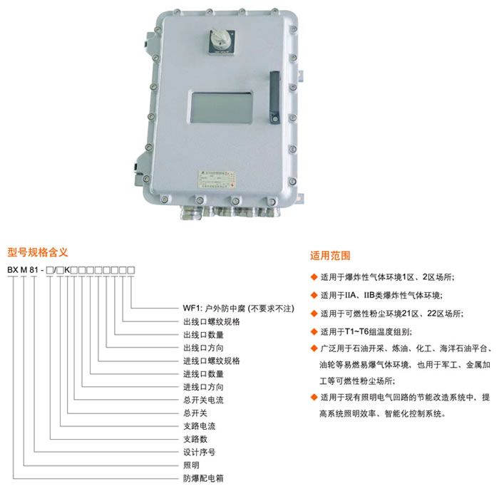 • 產(chǎn)品名稱:BXM81系列高效節(jié)能智能型防爆照明配電箱(ⅡB、tD、戶內(nèi)、戶外)