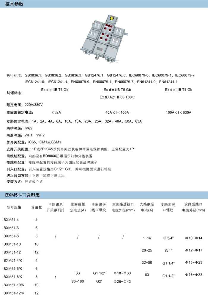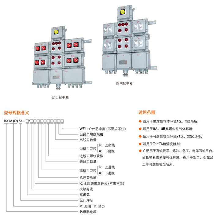 • 產(chǎn)品名稱:BXM(D)51系列防爆照明(動(dòng)力)配電箱(ⅡB、tD、戶內(nèi)、戶外)