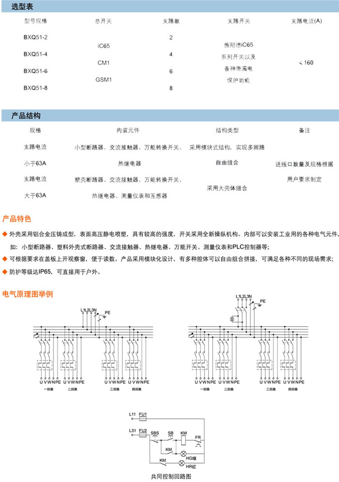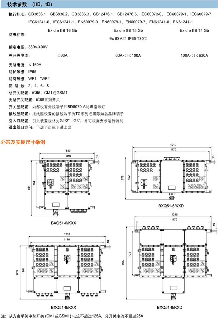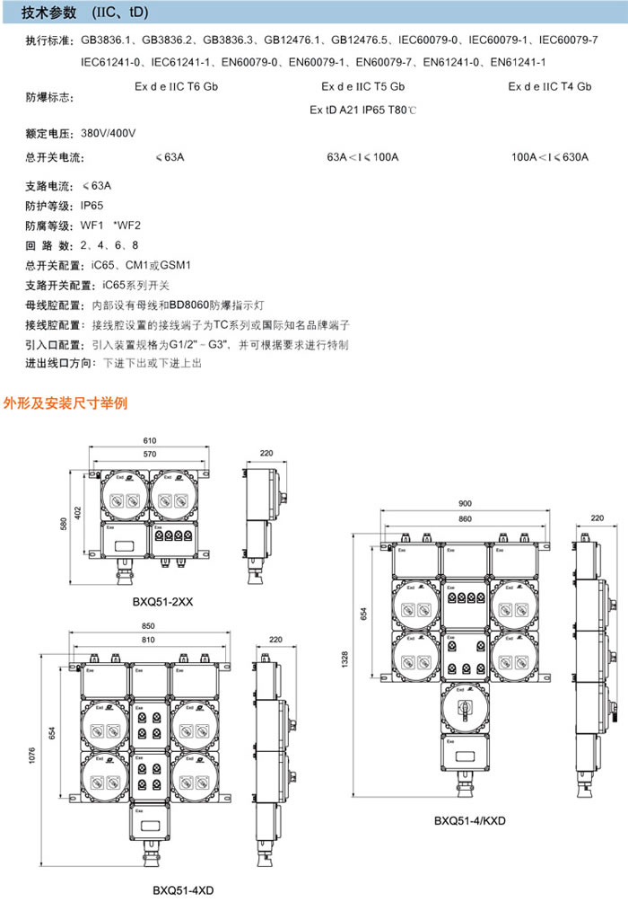 BXQ51系列防敗動(dòng)力(電磁起動(dòng))配電箱(ⅡB、ⅡC、tD、戶內(nèi)、戶外)