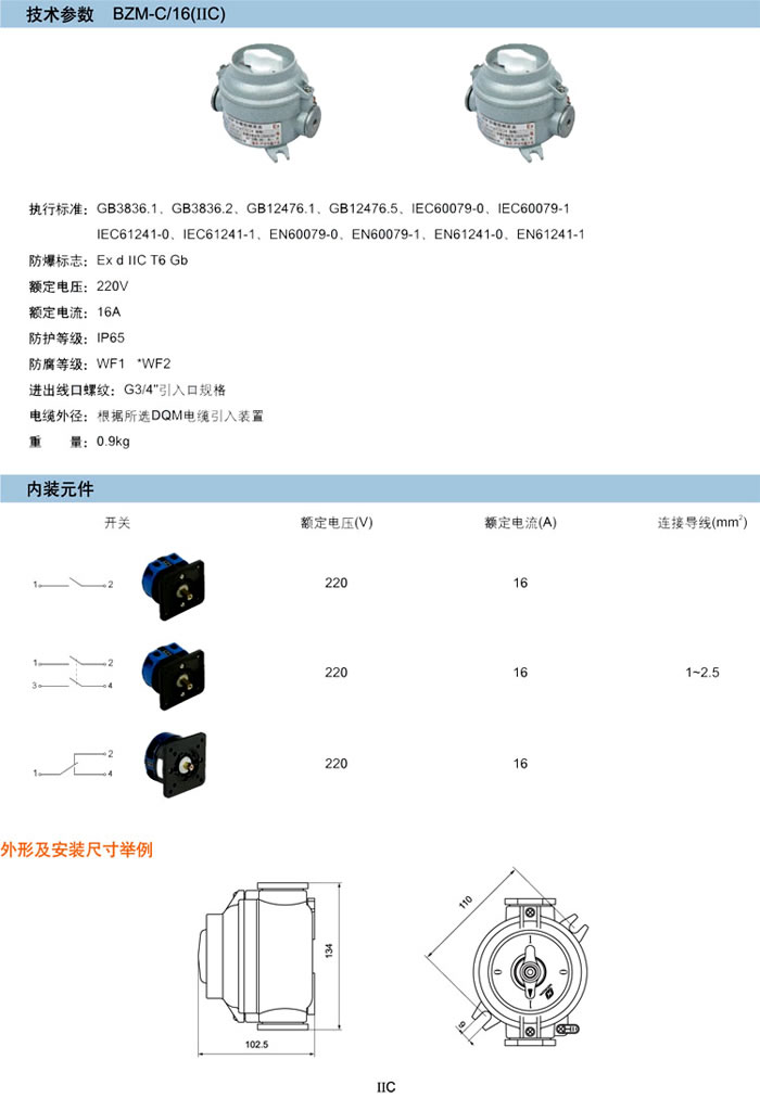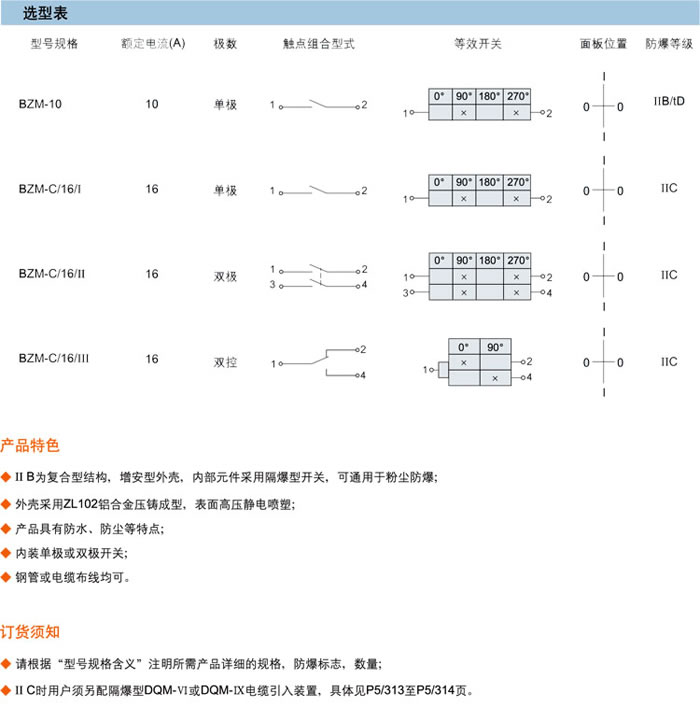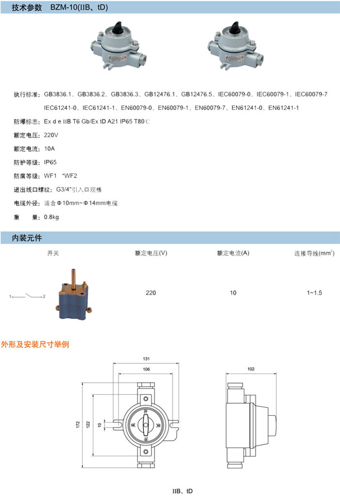 • 產(chǎn)品名稱:BZM系列防爆照明開關(guān)(ⅡB、ⅡC、tD)