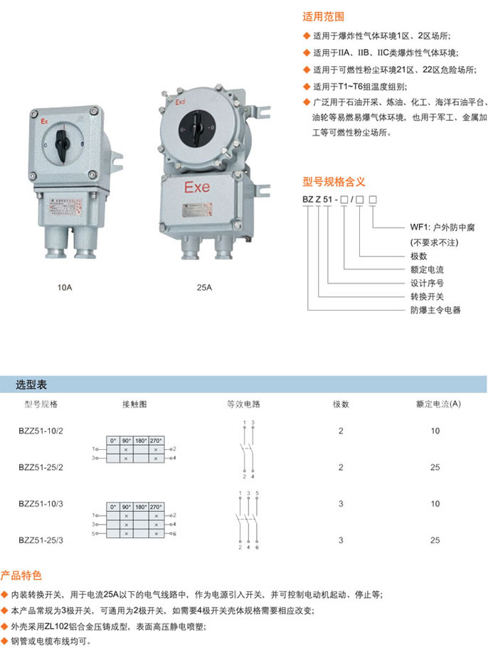 BZZ51系列防爆裝轉(zhuǎn)換開關(guān)(ⅡC、tD)