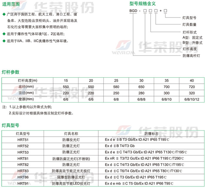 • 產(chǎn)品名稱:BGD系列防爆高桿燈(ⅡB、ⅡC)
