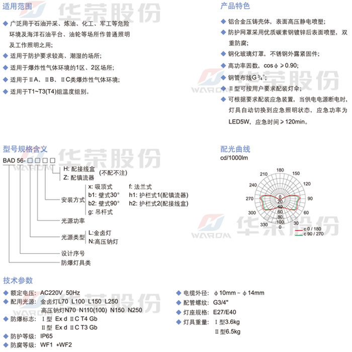 • 產(chǎn)品名稱:BAD56系列隔爆型防爆燈(ⅡC)