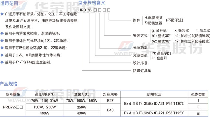 • 產(chǎn)品名稱:HRD72系列防爆燈(ⅡB)