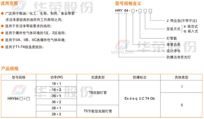 • 產(chǎn)品名稱(chēng):HRY84系列防爆潔凈熒光燈(雙腳電子式)(ⅡC)