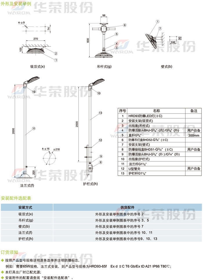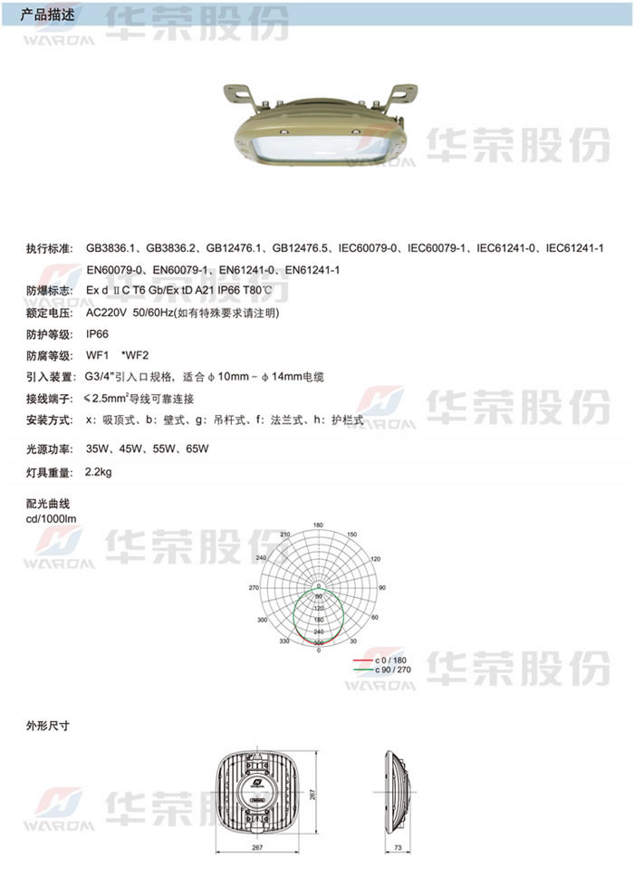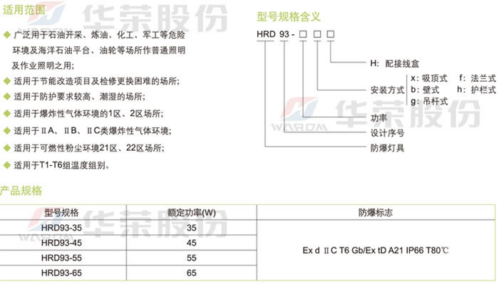 • 產(chǎn)品名稱:HRD93系列防爆LED燈(ⅡC)