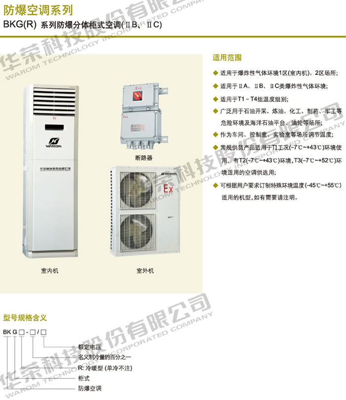 • 產(chǎn)品名稱:BKG(R)系列防爆分體柜式空調(diào)(ⅡB、ⅡC)